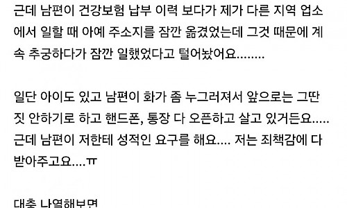 바람,외도,불륜 ... 내가 걸렸을 때 아내의 반응이 몹시 궁금하다.. ㅅㅅ리스 부부의 삶.. ㅠㅠ