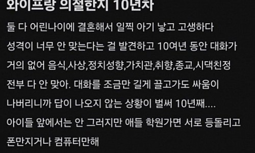 이런부부도 있네요. '와이프랑 의절한지 10년차'