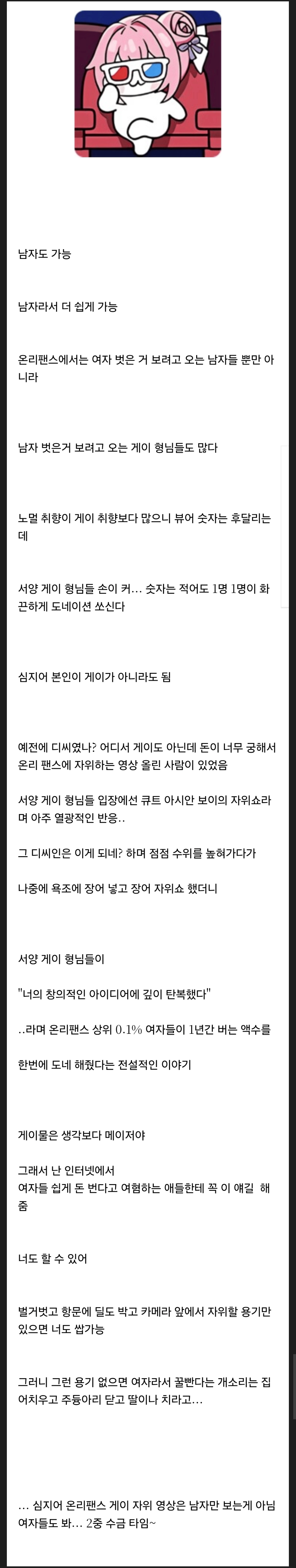 남자들아. 온니펜스로 벗방히는 여자들 돈 쉽게번다고 욕하지마라