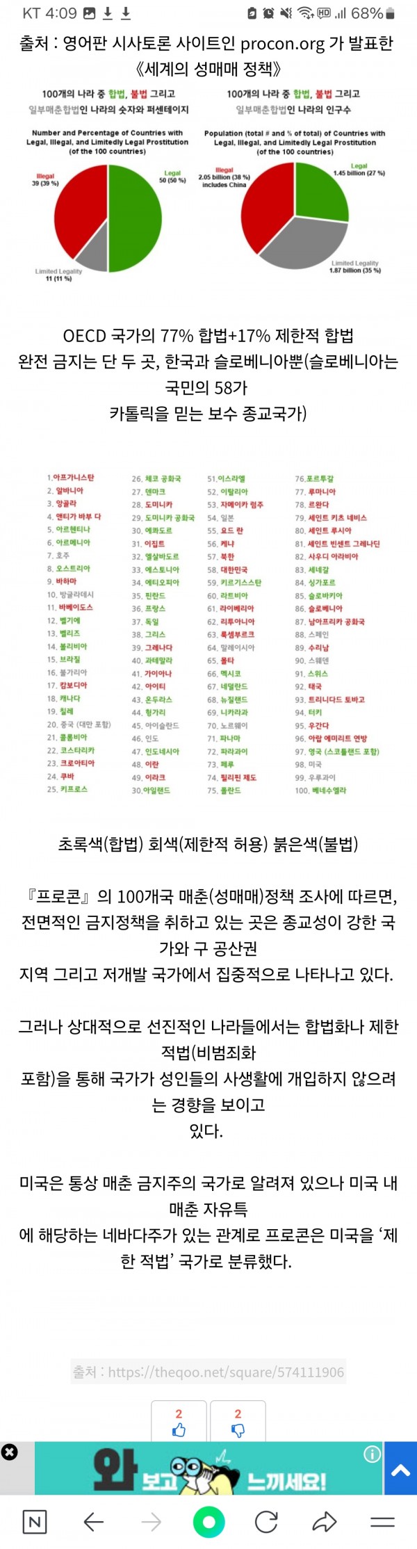 oced국가만 분류해서 성매매불법국가는 2곳.. 한국과 다른나라 1곳.