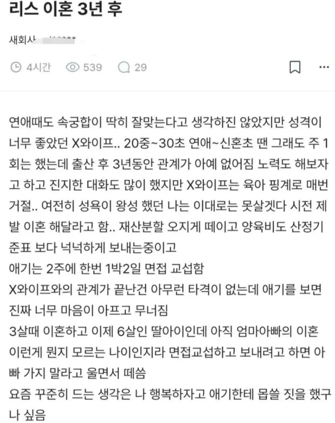 ㅅㅅ리스 이혼 3년 후....