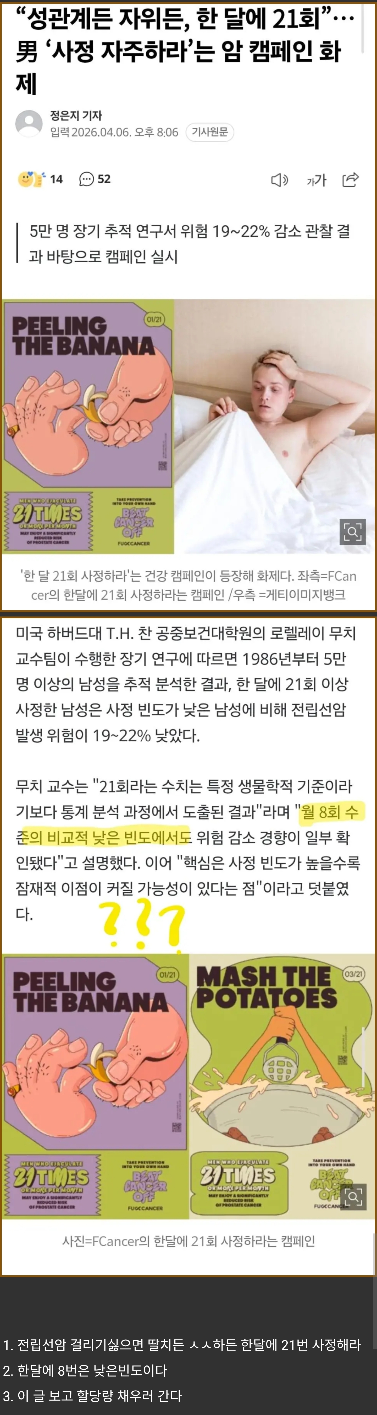 남자들이어 한달에 21번 사정해라