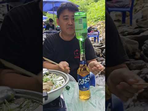 4. 탄산이 올라가면서 섞일 수 있게 밑에 있는 맥주병을 젓가락으로 당구처럼 두드린다