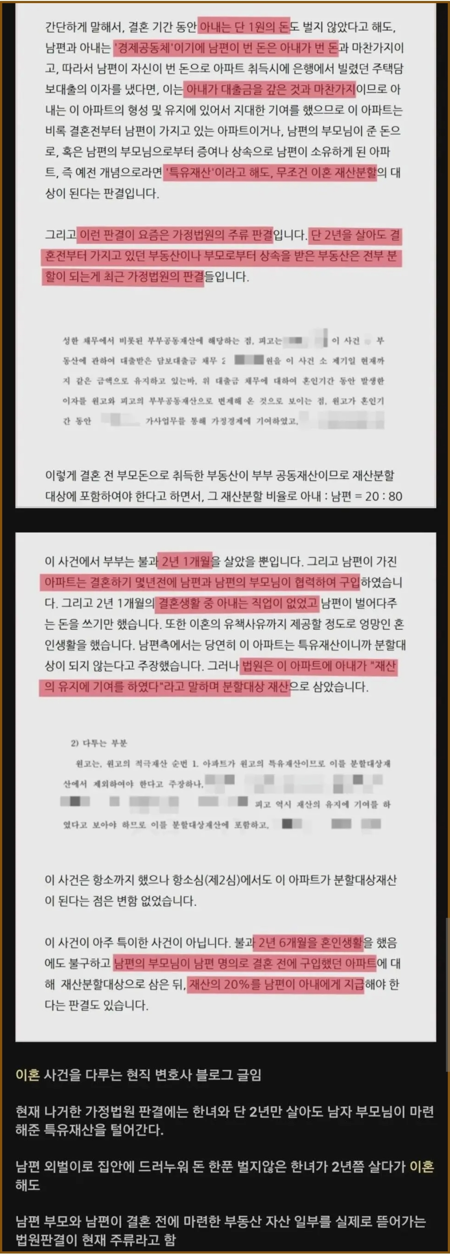 2년만 살았어도, 이혼 시 특유재산 분할